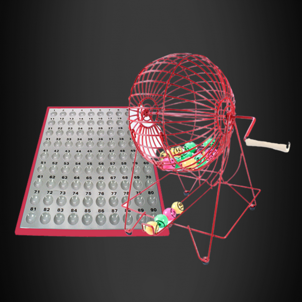 - This metal cage has a red plastic finish, ensuring that your games are lively and look the part!, There is a wooden handle that rotates as you turn the cage. It is lightweight with a secure and stable base, so can cope with even the most rigorous of rotation. Rubber feet prevent the cage from slipping on your table.
